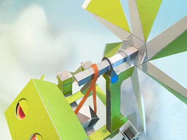 プーリーは風車の回転運動を遅く、強い動きにします。